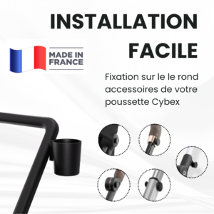 Cybex Eezy S Twist 2, Mios 3, Balios S Lux, Gazelle S. Fonctionne également sur la plupart des poussettes à tubes ronds.