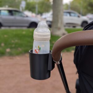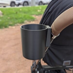 Porte-gobelet imprimé en 3D en PETG haute résistance. Compatible avec les poussettes Cybex Eezy S Twist, Mios, Balios S et la plupart des modèles à tube cylindrique.
